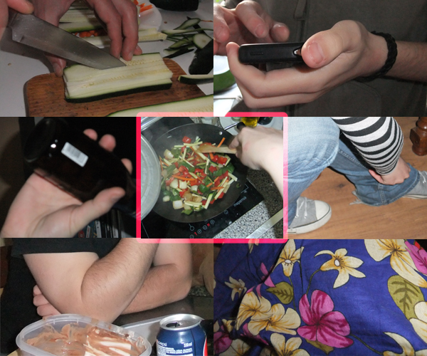 La foto del centro, la cocinillas, evidentemente soy yo (sí, mis manos). Y eso es parte del menú que hicimos (al final no hubo ramen, pero hicimos pollo para parar un tren y para satisfacer a todos los estómagos).