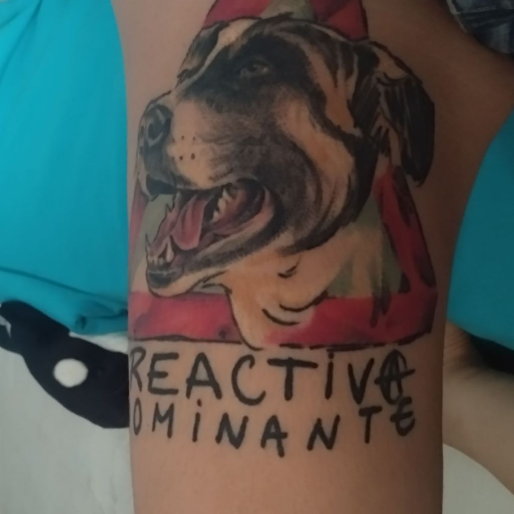 Ese paralelismo entre la mujer moderna del siglo XXI y el perro en la sociedad contemporánea fue lo que me llevó a hacerme un tatuaje tan concreto. Me explico. Los adiestradores poco versados en las tendencias de investigación actuales, consideran reactivos y dominantes a los perros con problemas de agresividad o a aquellos que reaccionan descontrolados sin atender a la causa que origina su comportamiento. Hoy en día, está demostrado que los animales tienen los mismos problemas que los humanos y que atendiendo al trasfondo de la reacción y apoyándolos con refuerzos positivos, en lugar de usar técnicas agresivas bastante contraproducentes, se puede llegar a resolver el problema en tiempos realmente sorprendentes. Lo contrario suele agravar la situación en detrimento de la salud física y mental del dueño y del animal y tiende a acabar en verdaderas catástrofes que hoy por hoy se consideran una barbarie (como el sacrificio, el abandono, o el suicidio y el asesinato, en el caso de las mujeres maltratadas que no son debidamente atendidas).